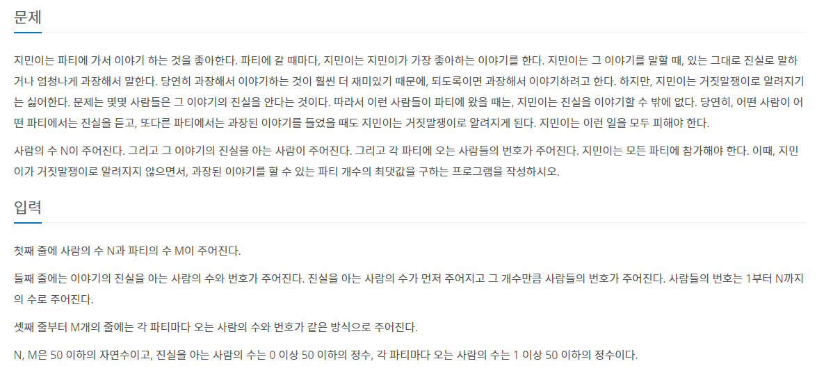 비교했을때, party 리스트의 한 줄 안에 stack에서 꺼낸 값이 있으면, stack에 party리스트 안의 값(r)을 추가하고, p리스트에도 추가한 뒤에 vis[r]=1한다.