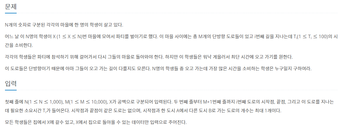 그래서 g라는 리스트에 가는데 걸리는 (시간,목적지)를 저장한다.