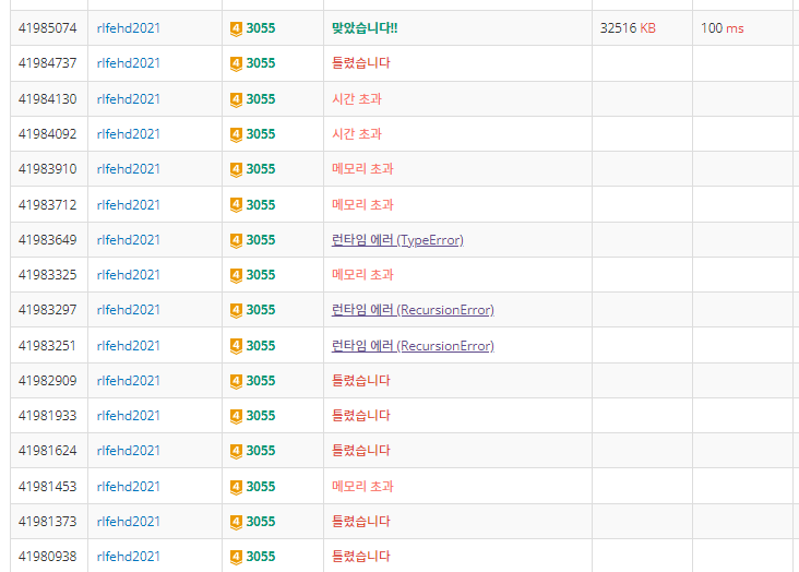 새로 리스트를 만들어서 재귀시켰더니 메모리 초과가 났다.