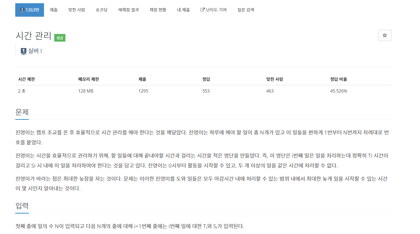 사용시간과 마감시간을 리스트에 입력받아서, 마감시간 기준으로 오름차순 정렬을 해준다.