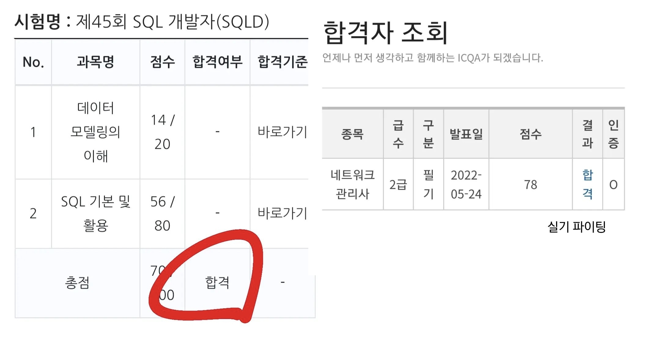 5월부터는 SQLD와 네트워크 관리사를 준비했다.