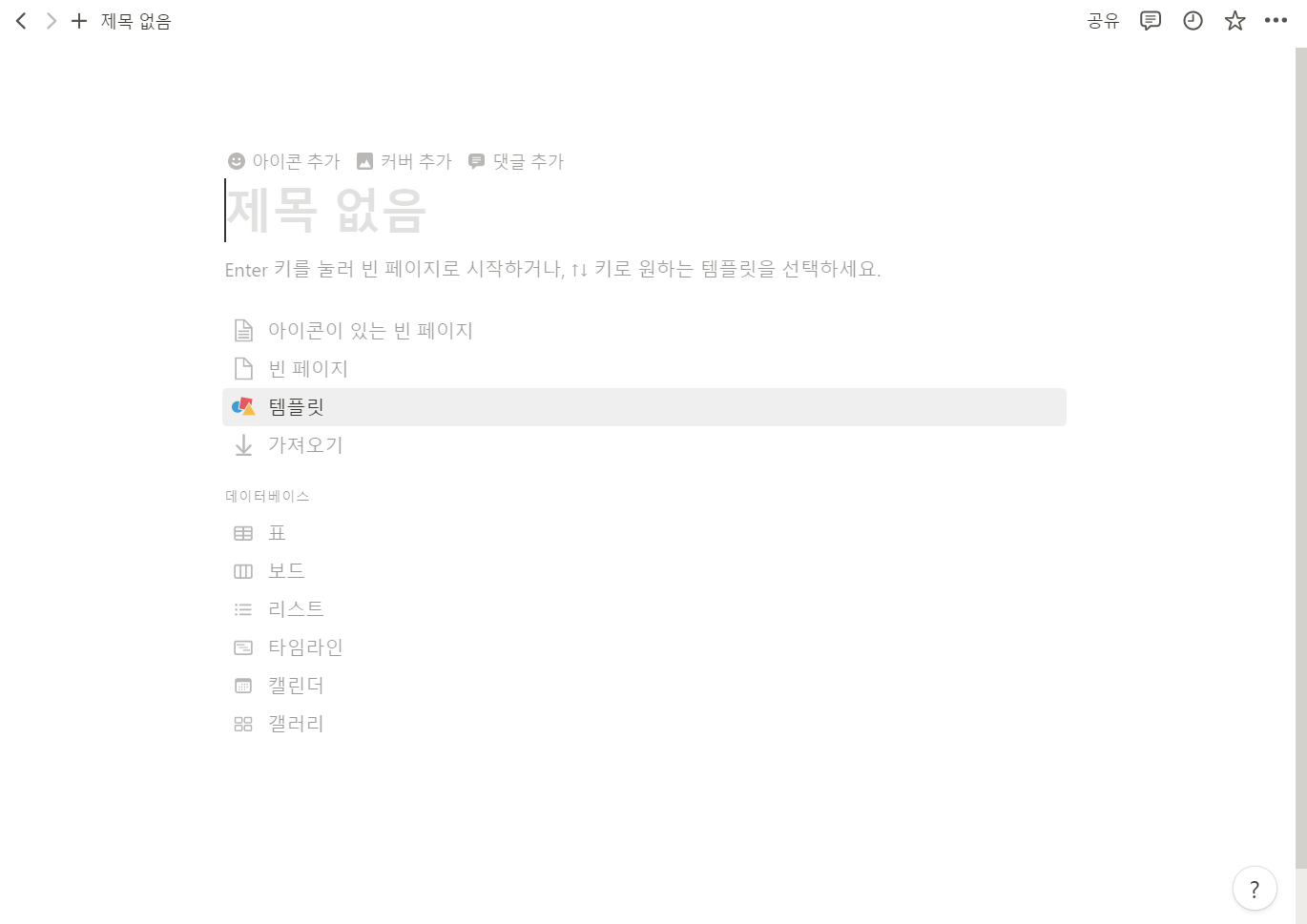 노션은 +버튼을 눌러 페이지를 추가하면 List에 제목없음이라는 문서가 추가된다.