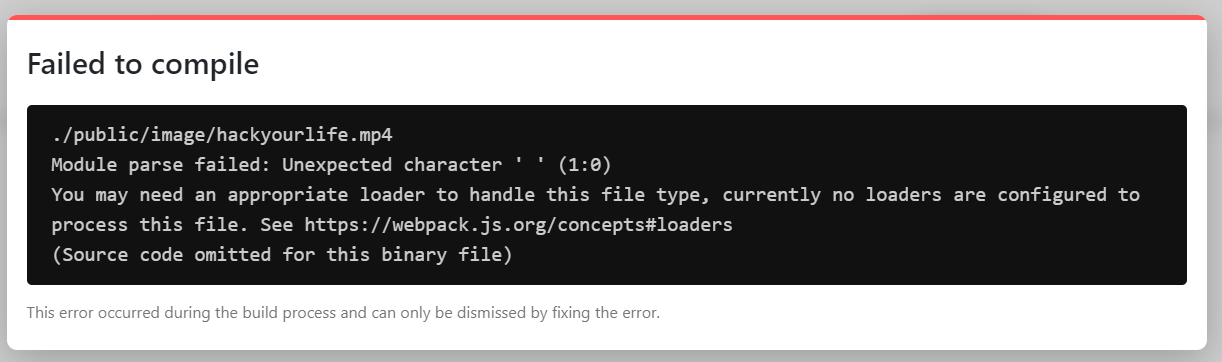웹팩에서 mp4파일에 대한 loader를 찾지 못해서 발생하는 오류이다.