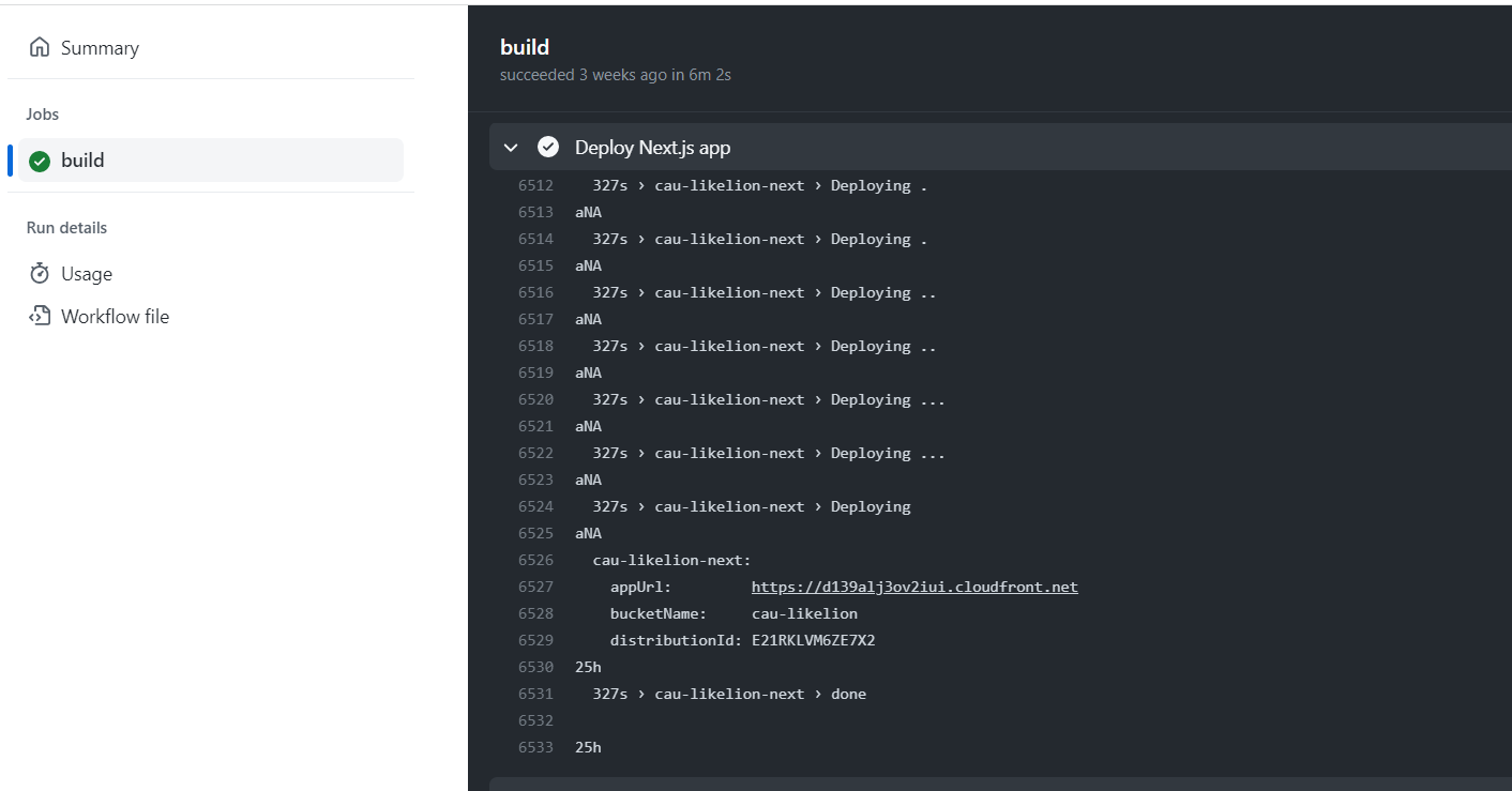 appUrl에 클라우드 프론트 주소가 표기되는 것을 볼 수 있다.