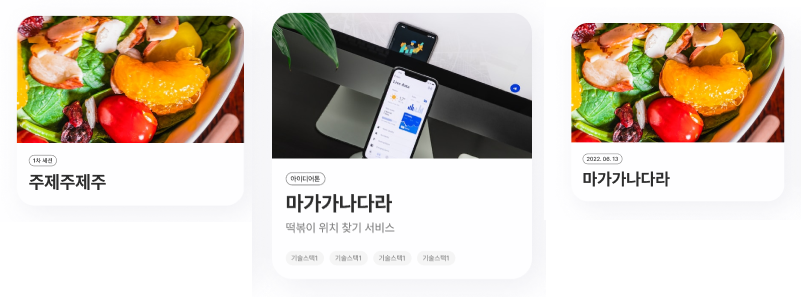 해당 페이지들은 모두 동일하게 아래와 같은 Card형식을 사용하고 있다.