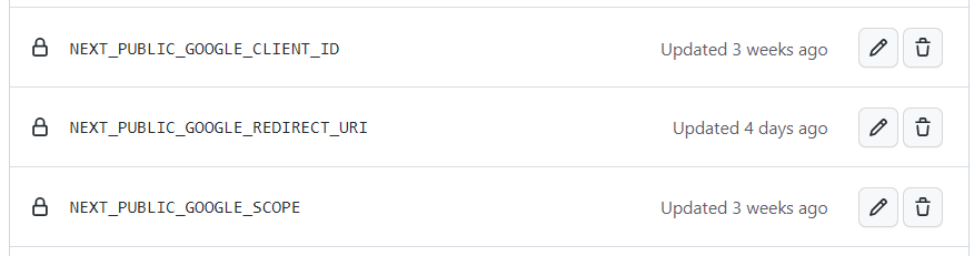 client_id와 google_scope는 변하지 않는 값이므로 따로 github에서 분기처리를 해주지 않았다.