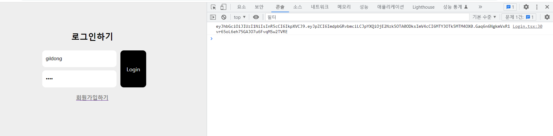 이러면 로그인시 이렇게 access token이 확인된다