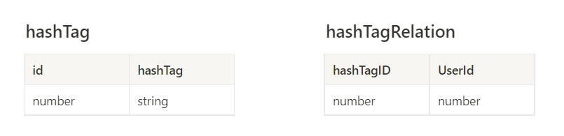 user테이블은 그대로 두고 hashTag와 hashTagRelation이라는 테이블을 새로 만든다.