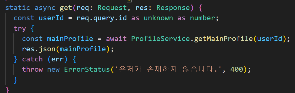 근데 express는 그런 공통 에러처리가 없어서 controller단에서 전부 오류를 처리해줘야하는 문제가 있었다.