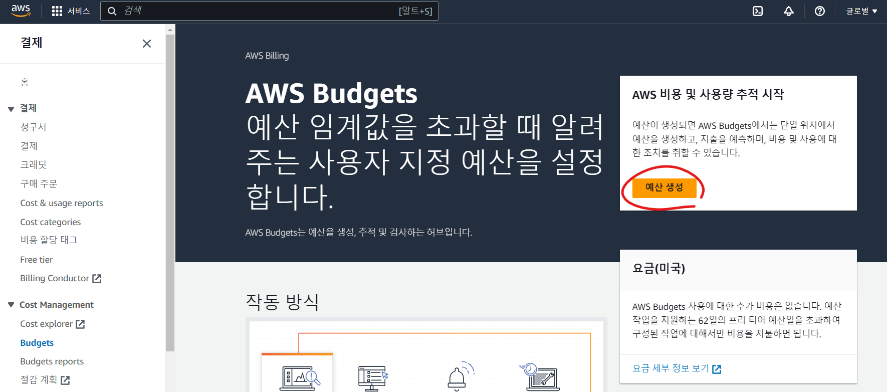 AWS Budgets 홈으로 가보자
