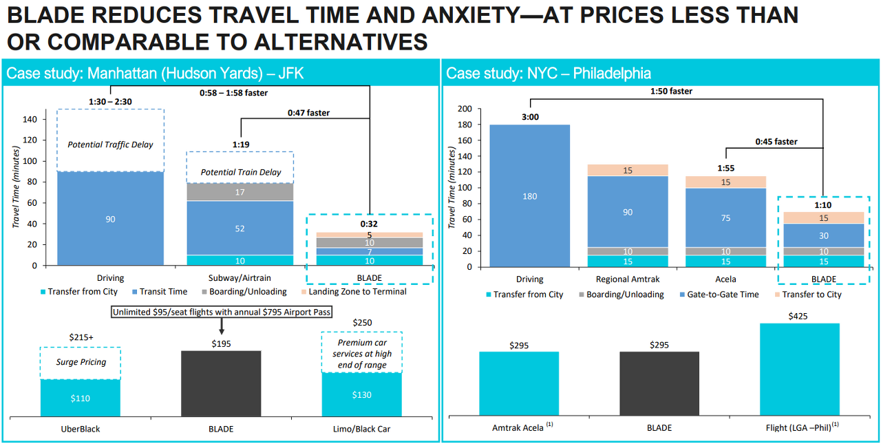블레이드는 60~ 100마일 항공편을 좌석당 595~795$에 제공한다.