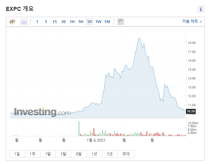ARKX에 편입될 기대감에 올랐지만 편입되지 않아 많이 떨어진 것 같다.
