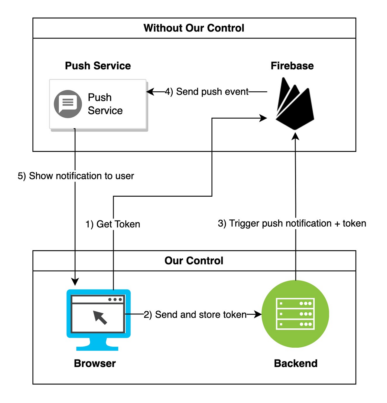 firebase가 push service에 push 이벤트를 보낸다.