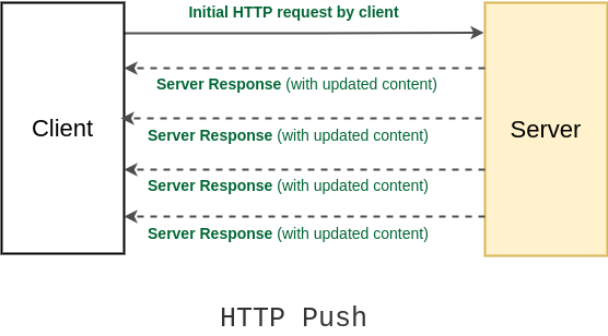 푸시는 요청이 없어도 응답을 내려준다.