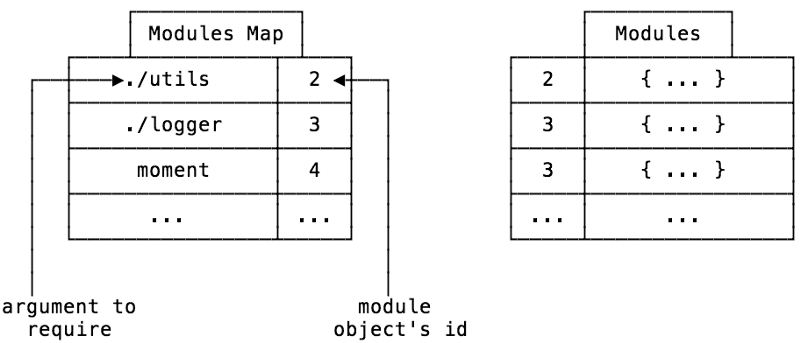 모듈맵은 앞선 단계에서 의존성을 표현한 객체의 id값을 경로에 매치시켜서 해당 모듈을 잘 찾아갈 수 있게 한다.
