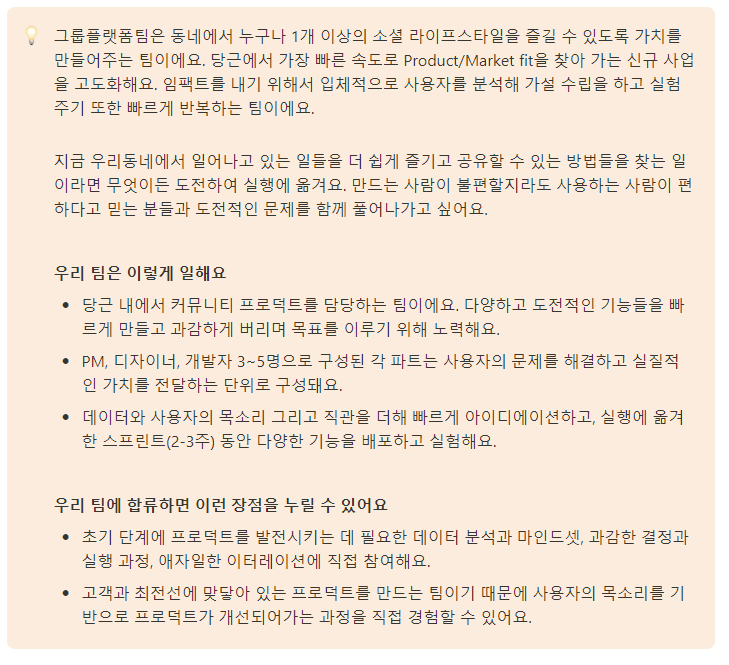 그 중, 그룹플랫폼에 조금 더 신경을 써서 이력서를 작성했다.