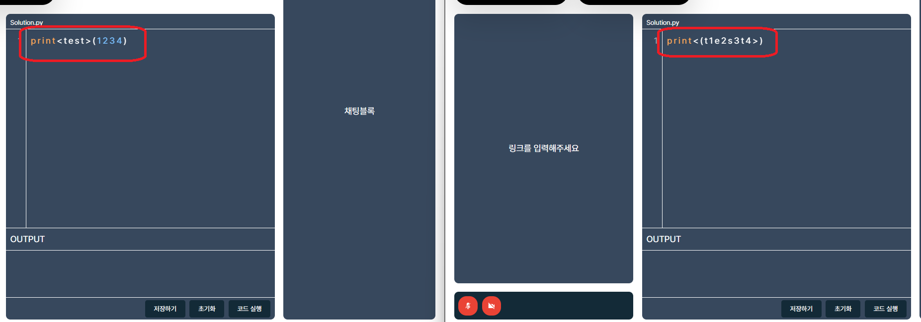 이렇게 작성한 코드를 바탕으로 print(1234)상태에서 <test>를 중간에 끼워넣어 print<test>(1234)로 만드는경우 해당 부분을 받는 클라이언트에서 글자가 깨지는 문제가 발생했다.