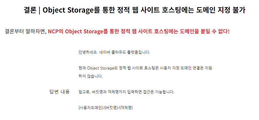 하지만,,,, NCP Object Storage는 커스텀 도메인설정이 불가능하다는 것을 알 수 있었다.