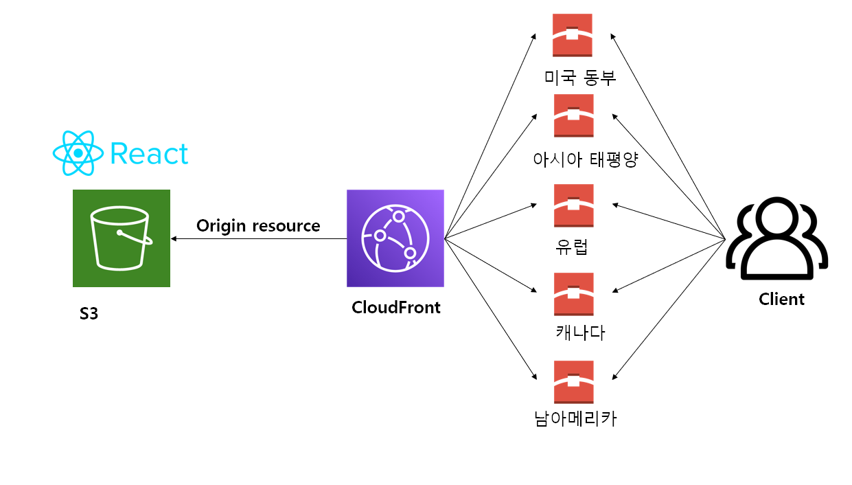 CloudFront는 전세계 이곳 저곳에 Edge서버를 두고, 클라이언트에게서 가장 가까운 Edge서버를 찾아 빠르게 컨텐츠를 제공한다.