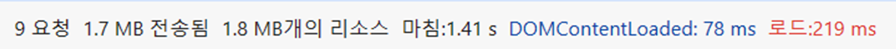 또한, 리소스 용량이 1.7MB로 줄어들었고, 로드하는 시간도 219ms로 감소했음을 확인할 수 있다!