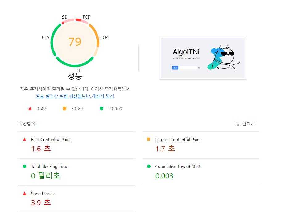 성능을 측정해보기 위해 lighthouse를 사용하던 중 점수대가 심상치 않다는 것을 알게되었다.