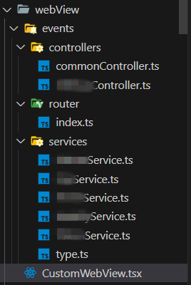 아래와 같이 위에서 설계한 CustomWebVIewEventType을 key로 갖고, value로 data와 send를 인자로 받는 함수를 갖는 객체형태로 Controller를 만들어주었다.
