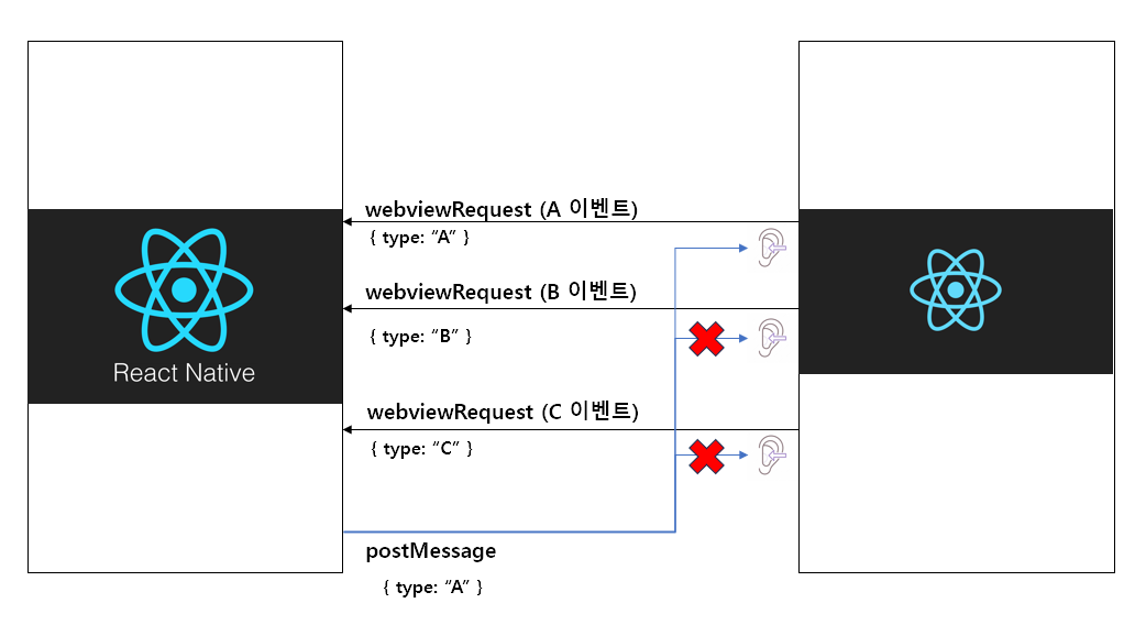 React에서 A이벤트를 보낼때 type을 담아서 보내고, RN에서 응답시에 동일한 type을 보내주는 것이다.