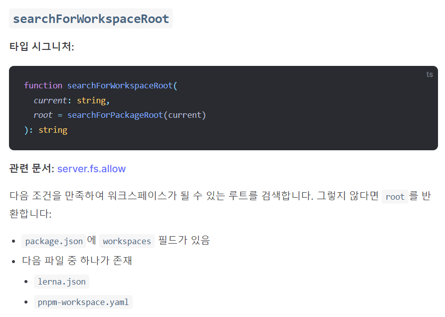 workspaceRoot = searchForWorkspaceRoot(projectRoot)//이건 vite의 api다.