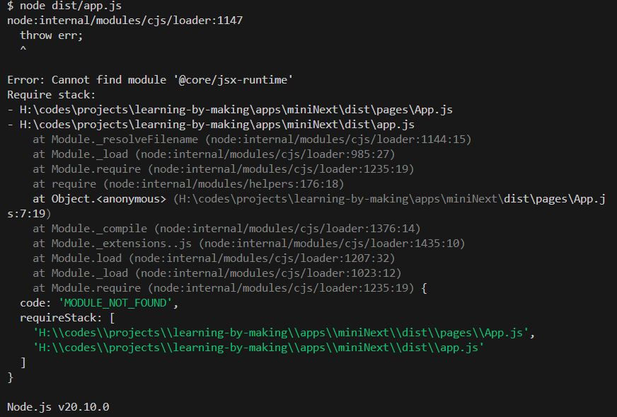 이는@core/jsx-runtime 경로를 찾을 수 없기 때문이다.