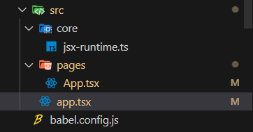 위처럼 설정하면 import { jsx, jsxs} from @core/jsx-runtime 으로 소스가 변경된다.