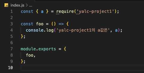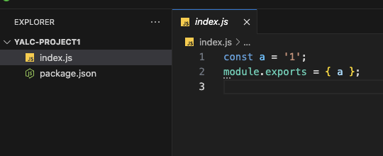 마찬가지로 npm init -y로 패키지를 만들어주었고, yalc-project1패키지에서 사용하는 변수를 사용할 것이다.