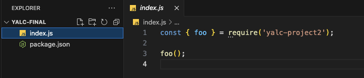 yalc-final이 yalc-proejct2를 의존성으로 갖도록 구성하였다.