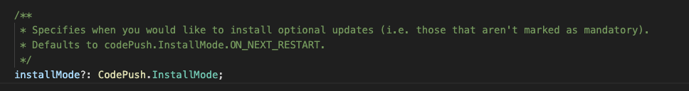 installMode: CodePush.InstallMode.IMMEDIATE,
