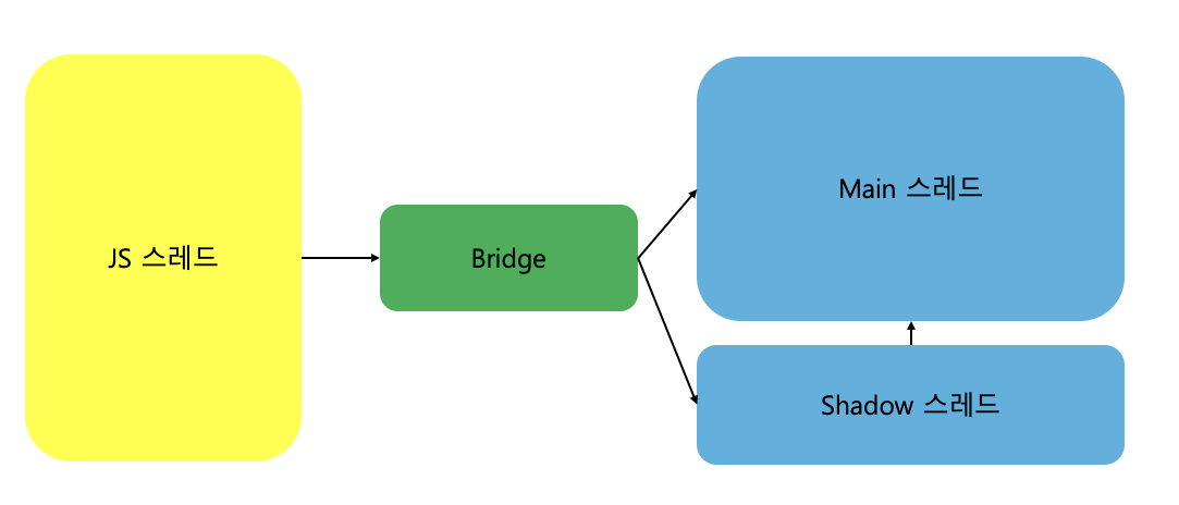 React native는 메인스레드, JS스레드, 백그라운드 스레드(Shadow 스레드)로 구성된다.