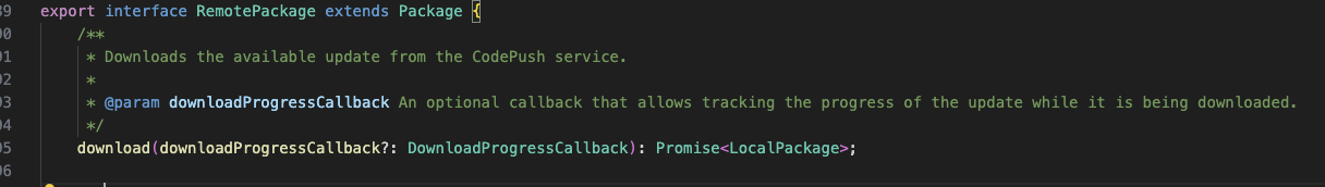Codepush 의 d.ts를 읽어보면 내용을쉽게 알 수 있다.