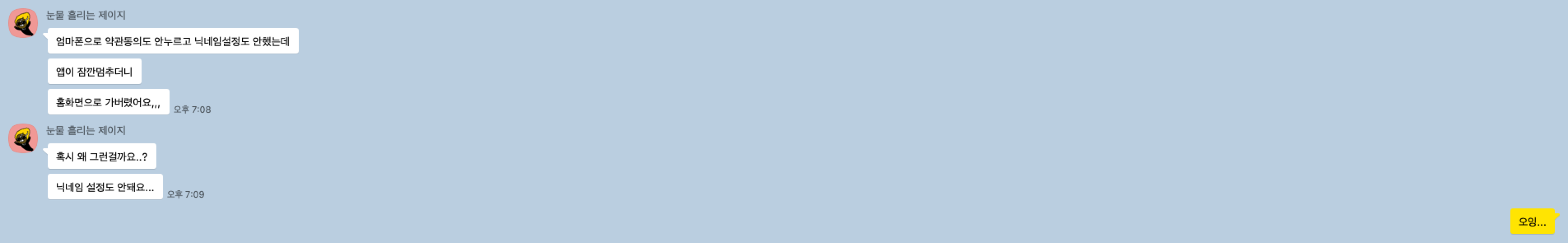 그것은 바로... 회원가입을 할때 앱 업데이트로 강제 재시작이 되어버리는 것...