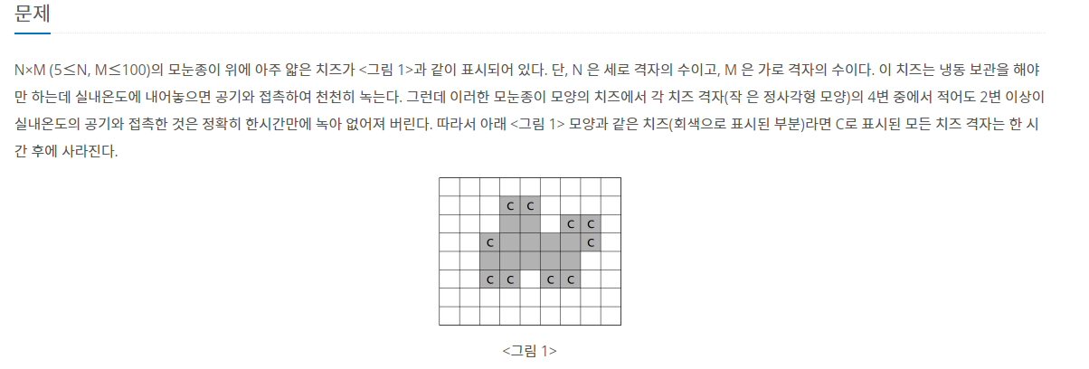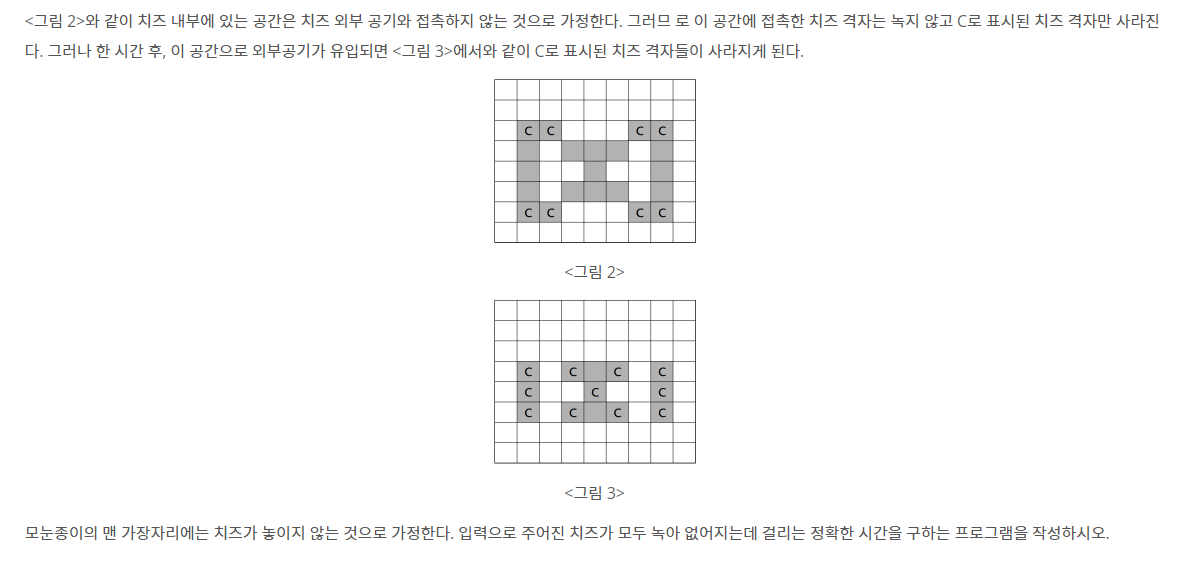 3. 치즈 좌표 중 위아래오른쪽왼쪽을 비교하여 1개 이상의 방향에서 외부공기(0)가 찾아지면 제거한다.